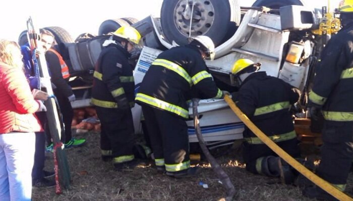 Un camión que transportaba zapallos volcó esta mañana pasadas las 8:00 a la altura del…