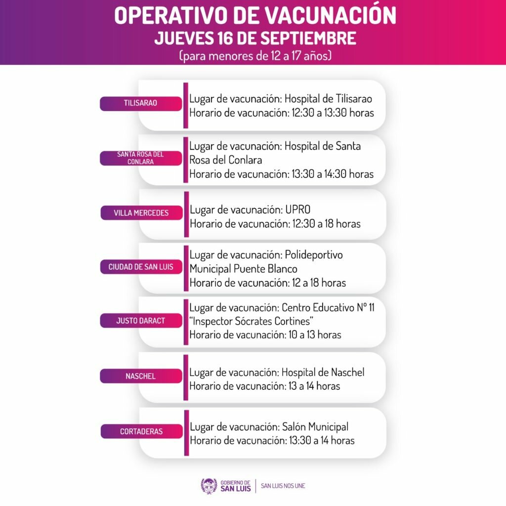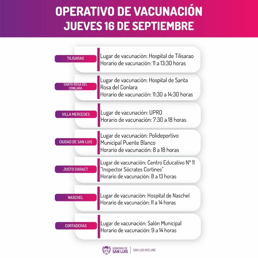 La convocatoria será desde las 7:30 y se extenderá hasta las 18:00, en Santa Rosa, Tilisarao, Naschel, Cortaderas, Justo Daract, Villa Mercedes y San Luis.