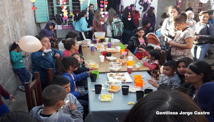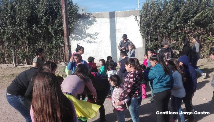 Este sábado alumnas del 5° y 6° de la escuela Paula Domínguez de Bazán adelantaron los festejos por Día del Niño y organizaron una gran fiesta para los pequeños del barrio Eva Perón.