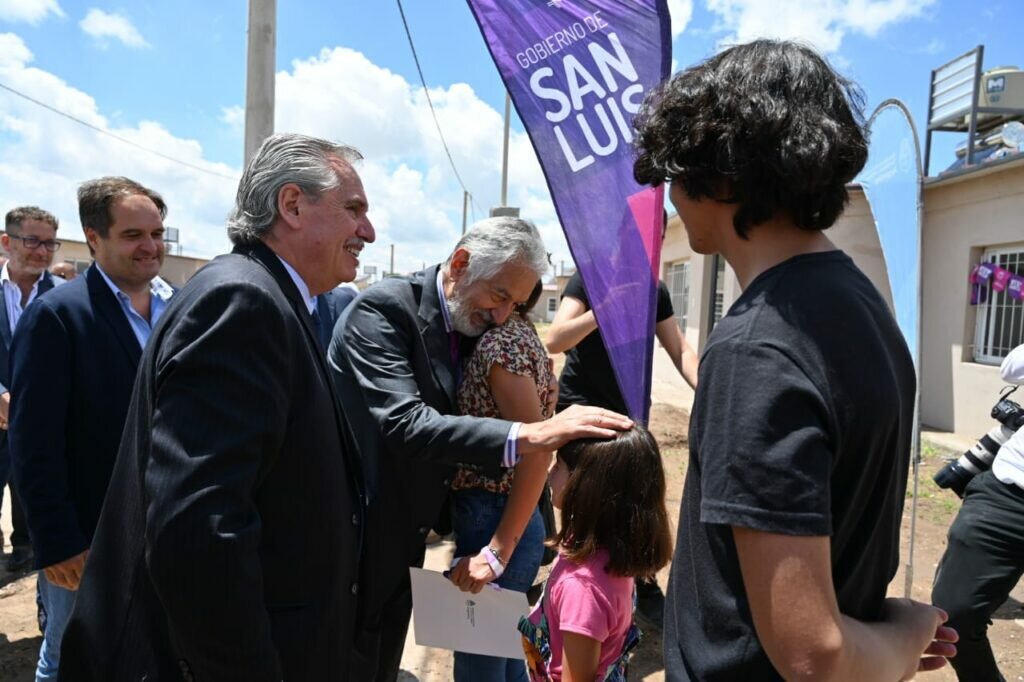 El jefe de Estado puntano, agradeció la presencia de Alberto Fernández al señalar que “¡está el presidente de los argentinos! ¡Qué lindo que esté acá con nosotros! ¡Gracias por venir, por coordinar con la Provincia y por este plan de vivienda!”.
