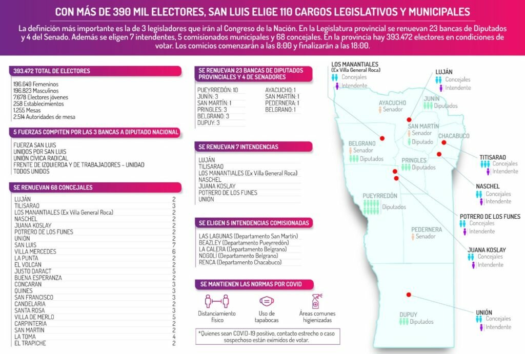 También en la provincia, se renuevan siete intendencias: Luján, Tilisarao, Los Manantiales, Naschel, Juana Koslay, Potrero de los Funes y Unión.