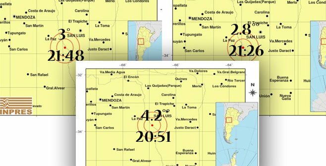 El Instituto Nacional de Prevención Sísmica (INPRES) reportó esta noche al menos tres réplicas o remezones que se produjeron tras el fuerte sismo de 6° que se produjo en el Departamento La Paz, Mendoza, casi en el límite con San Luis.