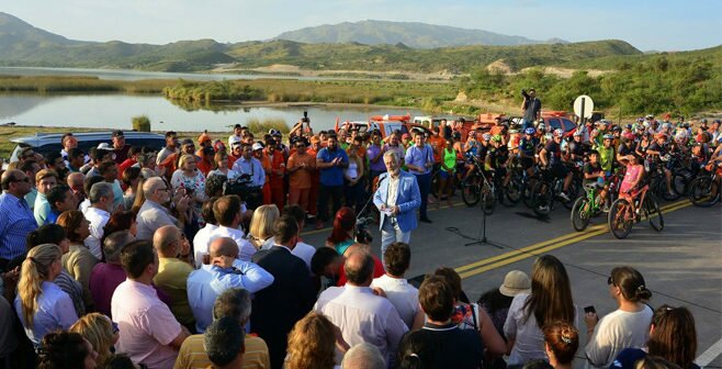 El gobernador, Alberto Rodríguez Saá, habilitó formalmente este viernes el camino del perilago en el Dique Cruz de Piedra.