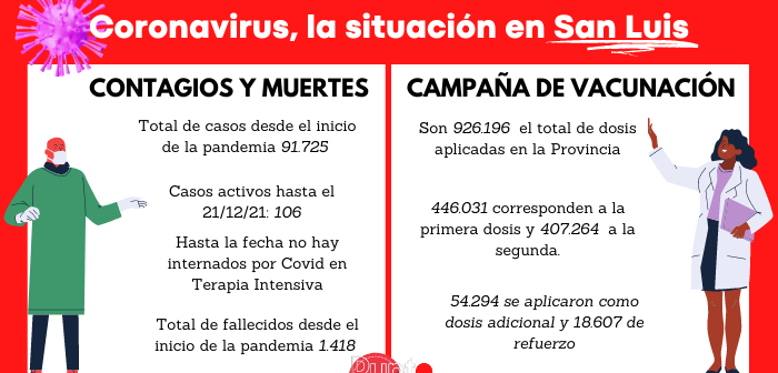 Hasta ayer en la provincia de San Luis se contabilizan 91.725 casos: 106 activos -ninguno de ellos internados en la Unidad de Terapia Intensiva-, 90.201 altas y 1.418 fallecidos.