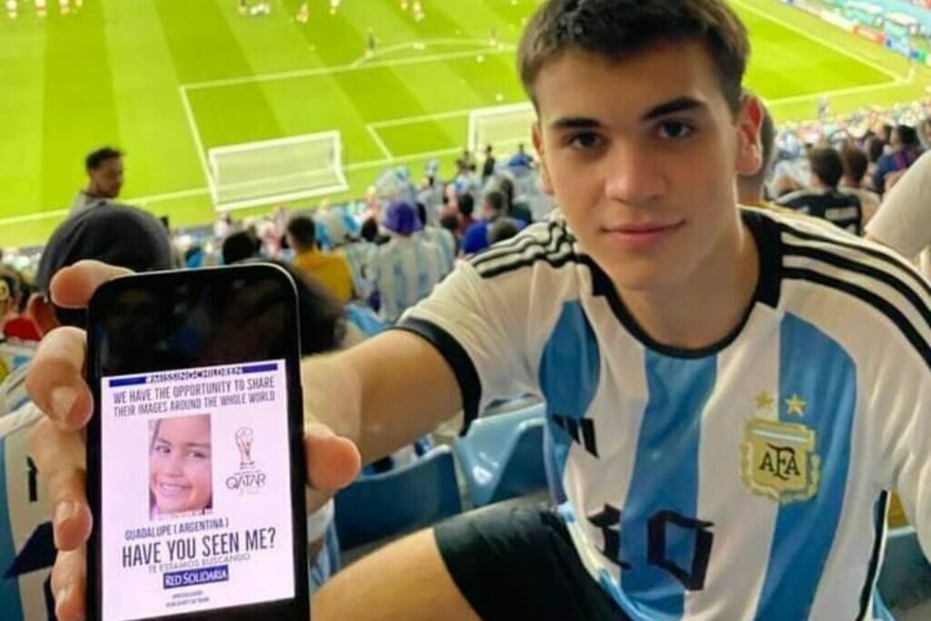 Esta tarde, minutos antes del comienzo del partido en que Argentina se impuso a Polonia y pasó a octavos de final, el hincha argentino Tomás, viralizó una imagen de Missing Children que pide colaboración para dar con el paradero de Guadalupe Belén Lucero.