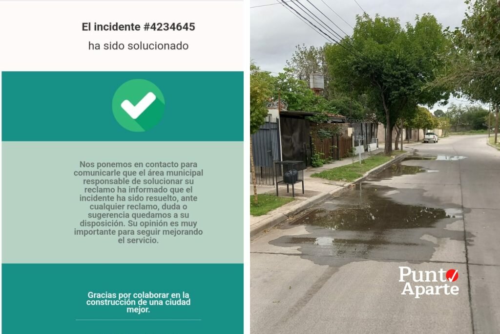 Lo más llamativo es que a quien presentó el reclamo le llegó un mensaje de la Municipalidad asegurando que inconveniente está resuelto, pero en los hechos el agua sigue derramándose.