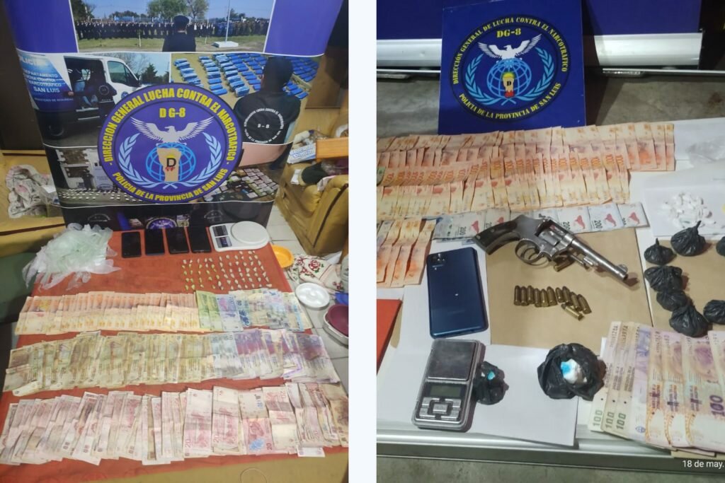 El personal de la Dirección General de Lucha Contra el Narcotráfico secuestró: un revólver calibre 32, municiones de distintos calibres, 133 envoltorios de cocaína, telefonía celular, balanzas de precisión, dinero en efectivo, anotaciones y otros elementos de interés para la causa.
