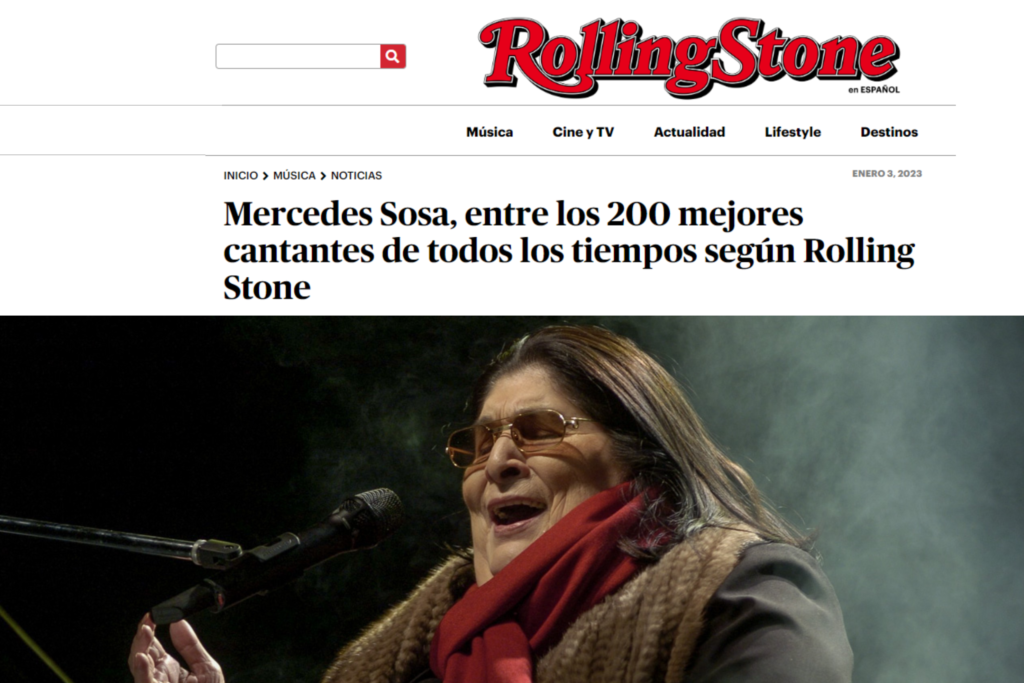 Esa conversación global a la que hacen referencia permitió que «La Negra», un ícono de la música argentina, se quede con el puesto número 160 de esta amplia selección. Allí, entre la cantante de country Brenda Lee y el cantautor de blues y folk «Mississippi» John Hurt.