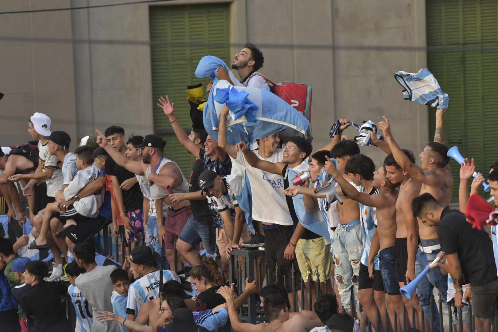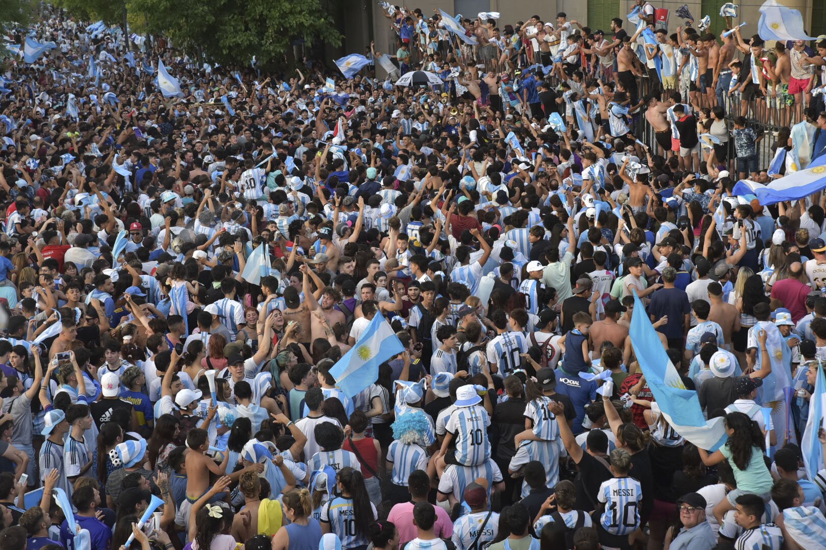 En tanto, miles de mendocinos y turistas colmaron de alegría y colores celeste y blanco las calles del centro de la ciudad capital y de San Rafael, al sur de Mendoza, en un sólo grito de aliento por el triunfo obtenido por la selección argentina en Qatar 2022.
