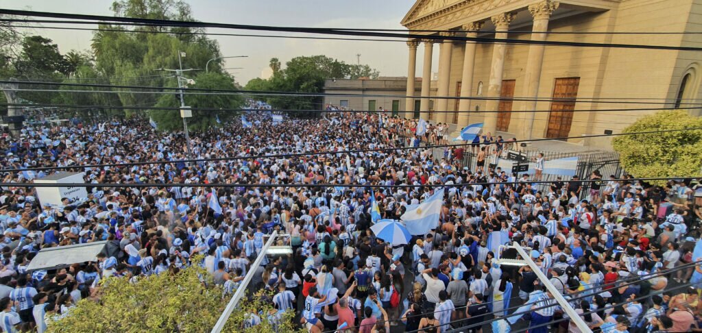 En San Luis, una marea celeste y blanca se agolpó en inmediaciones de la Catedral de la ciudad capital para festejar el triunfo de Argentina.