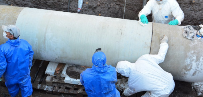 “En horas de la tarde llegó el caño que necesitábamos. Las tareas que quedaban era medir y cortar de manera perfecta la medida del ducto que íbamos a cambiar, de lo que íbamos a reemplazar porque estaba dañado. Después comienzan las tareas de pulido que tienen que estar totalmente secos y las superficies a adherir tienen que estar preparadas para recibir la resina de unión”, declaró la funcionaria.