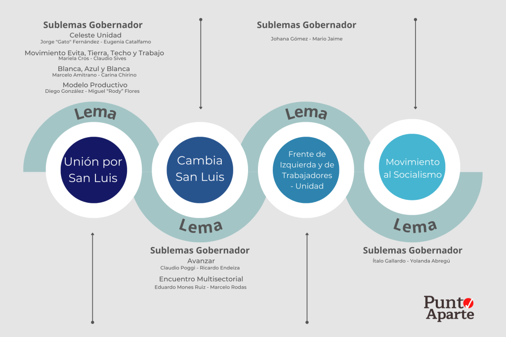 En 68 días los puntanos y puntanas elegirán al sucesor de Alberto Rodríguez Saá y en esa carrera formalizaron sus aspiraciones un total de ocho formulas de gobernador y vice enlistados en cuatro Lemas.