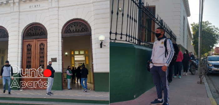 Tanto en el interior provincial como en la capital de San Luis se observan largas filas de personas en los frentes de las escuelas por las demoras que ocasiona el cumplimiento estricto de los protocolos sanitarios para prevenir contagios de Coronavirus.