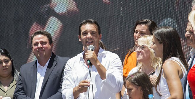 Allí, en plena calle Colón, lo esperaba un escenario desde donde pronunció un mensaje, muy emotivo, pero a su vez clarificador sobre el rumbo de su gestión: Modernización, descentralización y calidad de vida del vecino como eje de todas políticas.