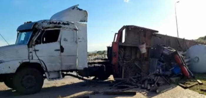 El chofer, de unos 30 años, perdió el control del camión, chocó contra una luminaria y por el impacto el acoplado volcó, mientras que la cabina quedó en pie.